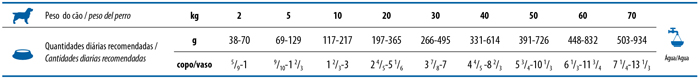 Umidade (máx.) 90g/kg(9%); Proteína Bruta (mín.) 180g/kg(18%); Extrato Etéreo (mín.) 50g/kg(5%); Extrato Etéreo (máx.) 90g/kg(9%); Matéria Fibrosa (máx.) 20g/kg(2%); Matéria Mineral (máx.) 60g/kg(6%); Cálcio (mín.) 5.000mg/kg(0,5%); Cálcio (máx.) 10g/kg(1%); Fósforo (mín.) 5.000mg/kg(0,5%); Sódio (mín.) 2.000mg/kg; Potássio (mín.) 5.500mg/kg; Metionina (mín.) 3.500mg/kg; Triptofano (mín.) 1.700mg/kg; Taurina (mín.) 1.000mg/kg; Mannan-Oligossacarídeos (mín.) 400mg/kg; Fruto-Oligossacarídeos (mín.) 6.000mg/kg; Beta caroteno (mín.) 1,5mg/kg; Ômega 6 (mín.) 10g/kg; Ômega 3 (mín.) 5.000mg/kg; Ácido Eicosapentaenoico (EPA) + Ácido Docosahexaenoico (DHA) (mín.) 2.000mg/kg.