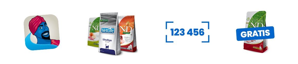 Comienza descargando la app FarminaGenius en tu dispositivo. Compra bolsas de alimentos secos N&D y Vet Life dentro de la misma categoría de peso. Usa la app FarminaGenius para subir los códigos únicos de las bolsas que compraste. Una vez hayas reunido 12 códigos únicos dentro de la misma categoría de peso, estarás listo para reclamar tu bolsa gratuita. Tu bolsa de cortesía corresponderá a la fórmula más comprada entre las 12.