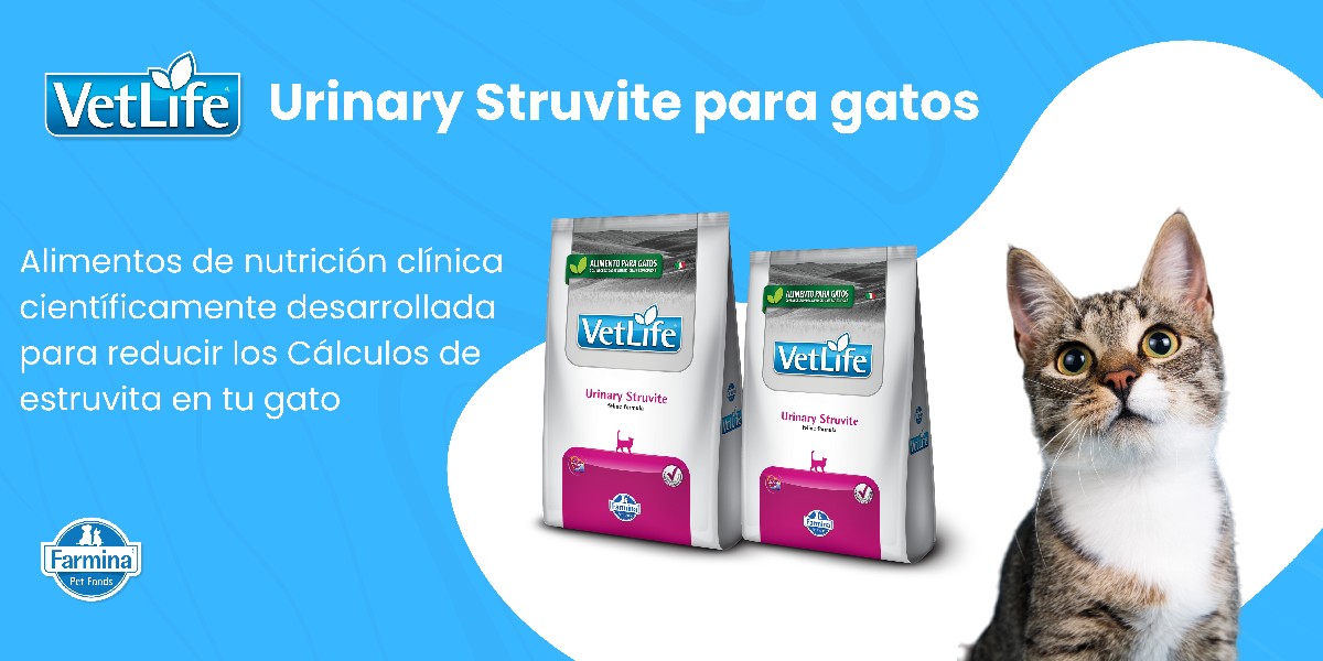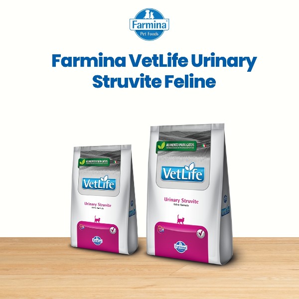 VetLife Urinary Struvite es la Dieta Nutricional Clínica de Farmina ideal para la disolución de cálculos estruvita, capaz de disolver urolitos que estimulan el pH urinario dentro del rango fisiológico, Las bajas concentraciones de fósforo y magnesio asociados a pH urinario ácido generan un ambiente desfavorable para la agregación y precipitación de cristales y para la proliferación bacteriana.