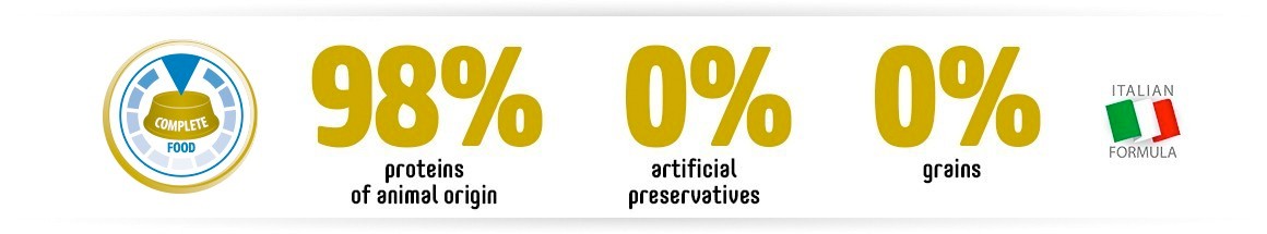 Instead, N&D Ocean foods, both dry and wet, are complete foods containing ALL the necessary nutrients for the daily well-being of our four-legged family members. Complete foods such as the range of Natural & Delicious wet diets can be fed either exclusively or in mix feeding.