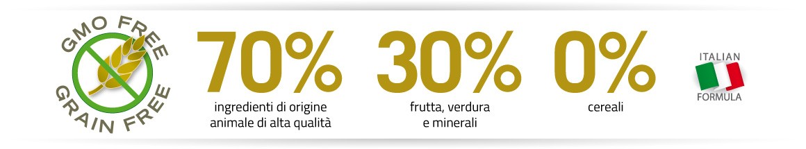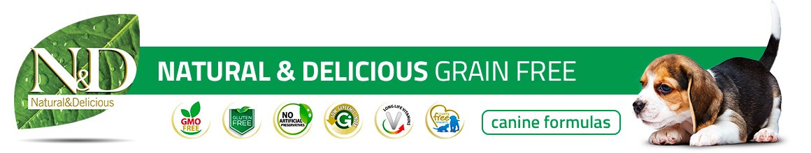 Years of scientific research in collaboration with the Chair of Animal Nutrition of University of Naples Federico II led Farmina Vet Research group to formulate a nutritional system designed on the nature of our four-legged family: Natural & Delicious Grain Free, the nutrition system for carnivores completely without cereals and GMO Free, with with 70% of really high quality animal origin raw materials.