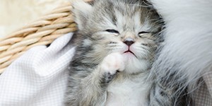 We advise that you reserve a secluded corner with a bed, food, water, and a litter box for your kitten to use during this adjustment period.  Cats are typically “nap champs,” as they spend about two-thirds of their lives sleeping. If your kitty is asleep, don't wake him up just to cuddle. Let your new kitten sleep so he gets the rest he needs and develops a sense of security. Every effort you make now will be rewarded with love you in the future.